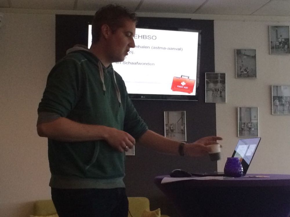 Op vrijdagavond 13 april heeft Davie in de kantine van korfbalvereniging Stormvogels een presentatie gehouden samen met Remko Corbijn. Vanuit de vereniging was de vraag gekomen hoe je moest handelen als er iets gebeurd met iemand tijdens het sporten.